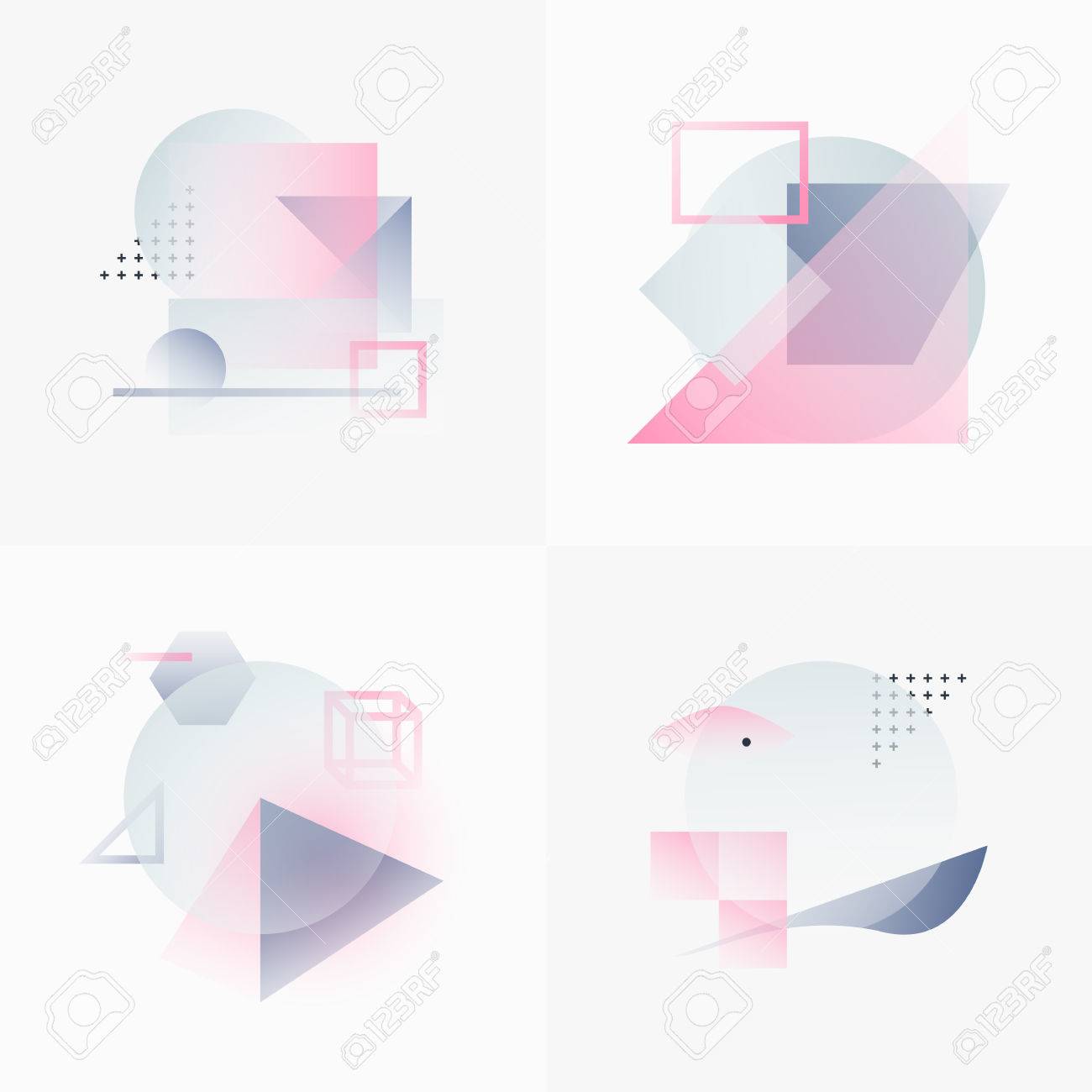 グラデーションの形状を形成します。抽象的なポスター デザイン。幾何学的なベクトル オブジェクト。プラトニックな形や数字。シンプルなアートワークの一意のセット。Webは、近代的な装飾を印刷、ブランディング、パターン、テクスチャ。のイラスト素材・ベクター Image。