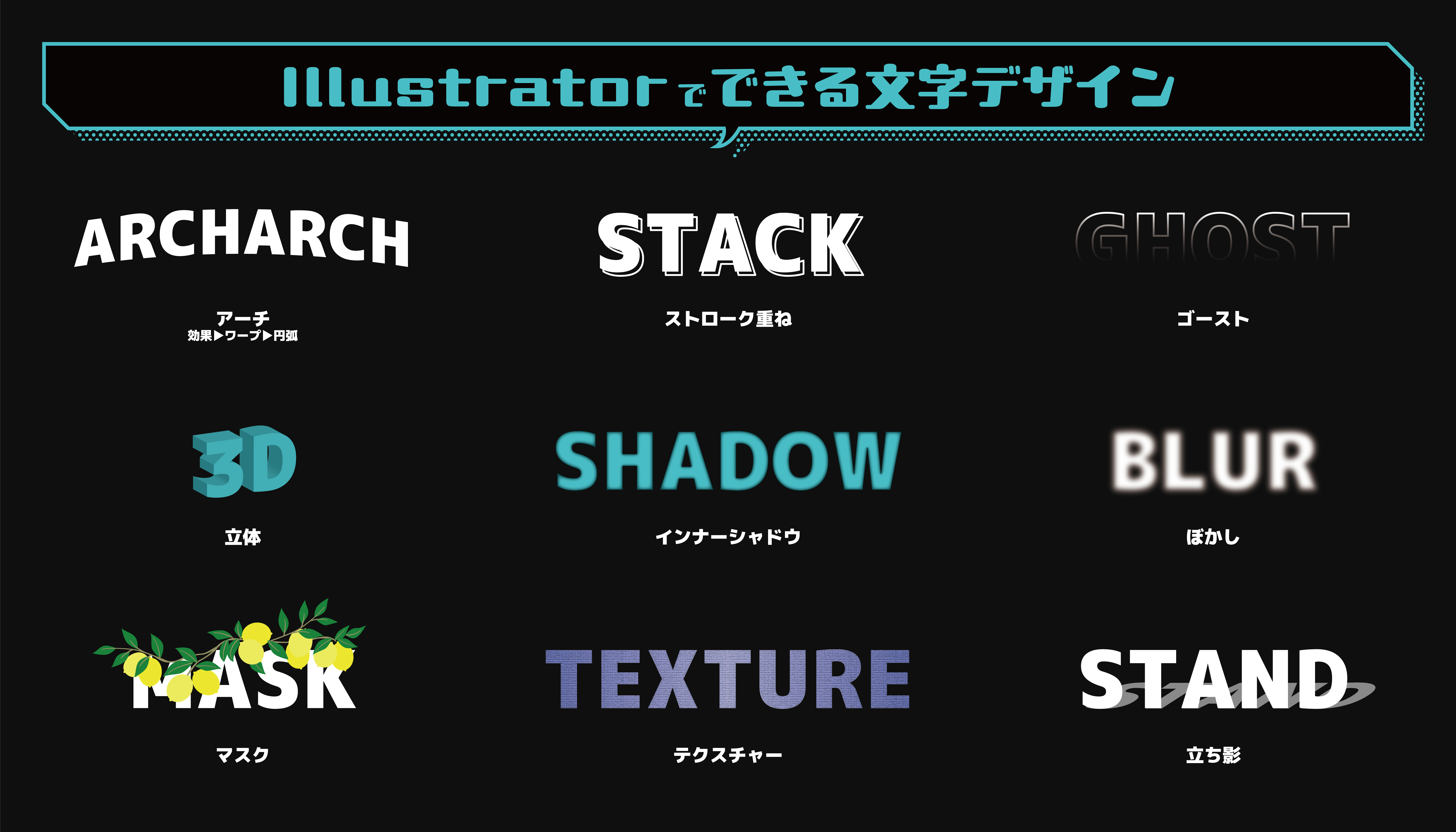 Illustrator イラレ で作ることができる文字加工のまとめ。