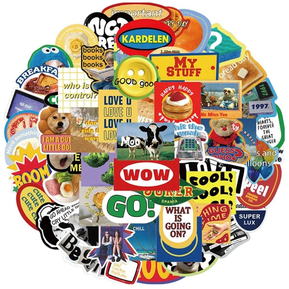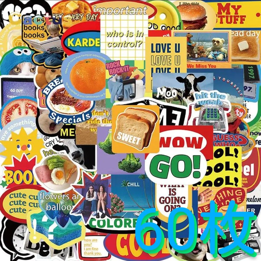 カラフル 写真グラフィック ステッカー 60枚 シール90年代ポップ英文字英語ステッカ。