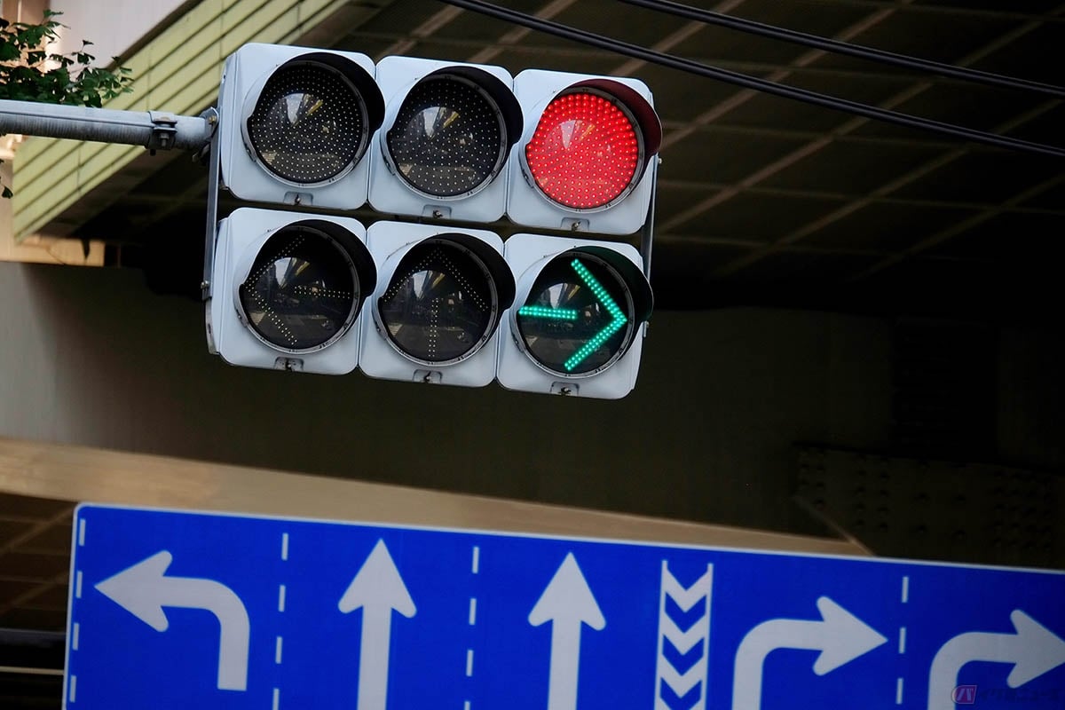 赤なのに全方向矢印「←↑→」が点灯する信号機! 普通の青信号と何が違う? その意外な役割とは。KURU KURA くるくら。