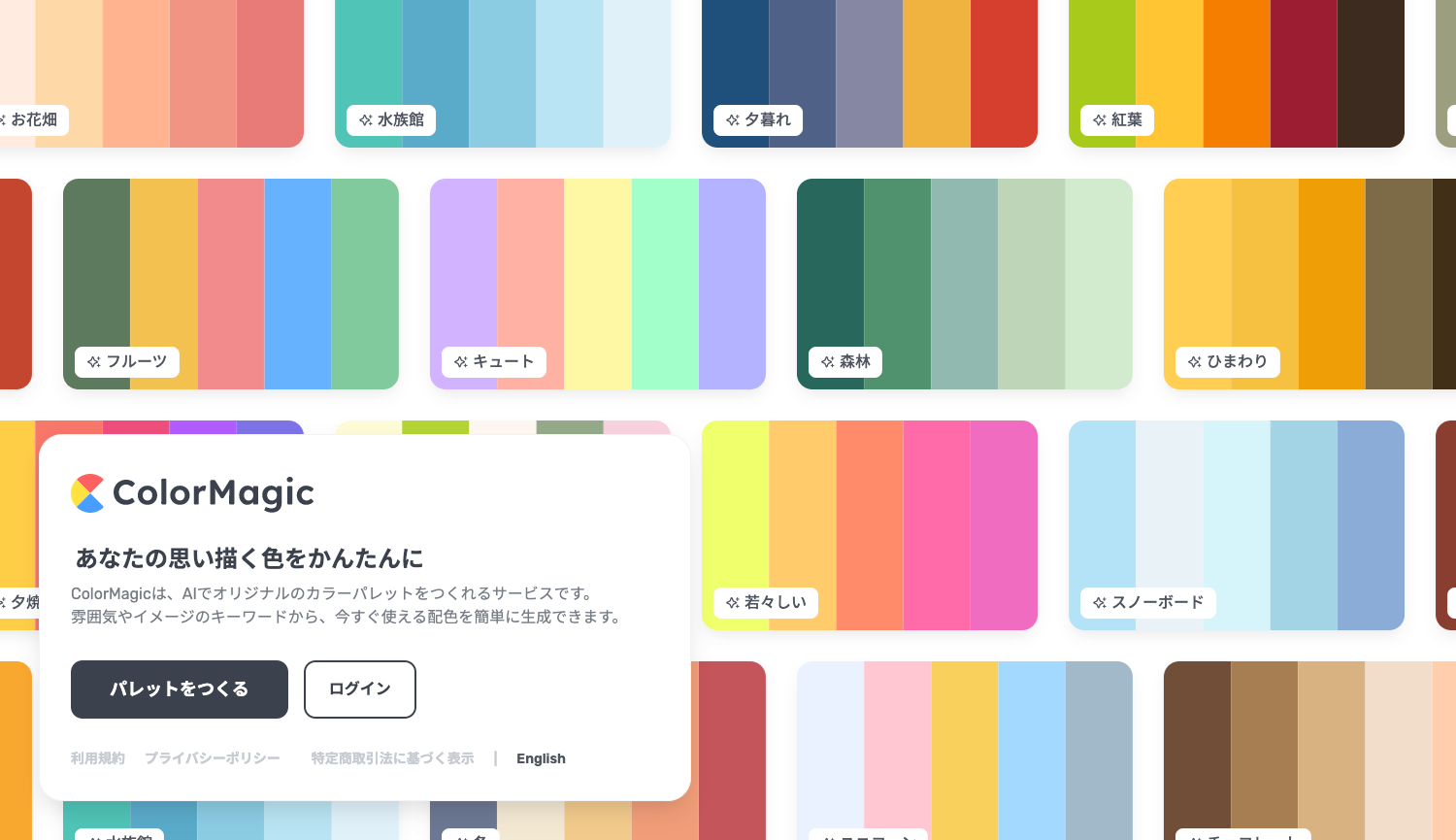 指定したカラーを元に、最近のデザインで使われている色の組み合わせやグラデショーンを生成 -ColorSpaceコリス。