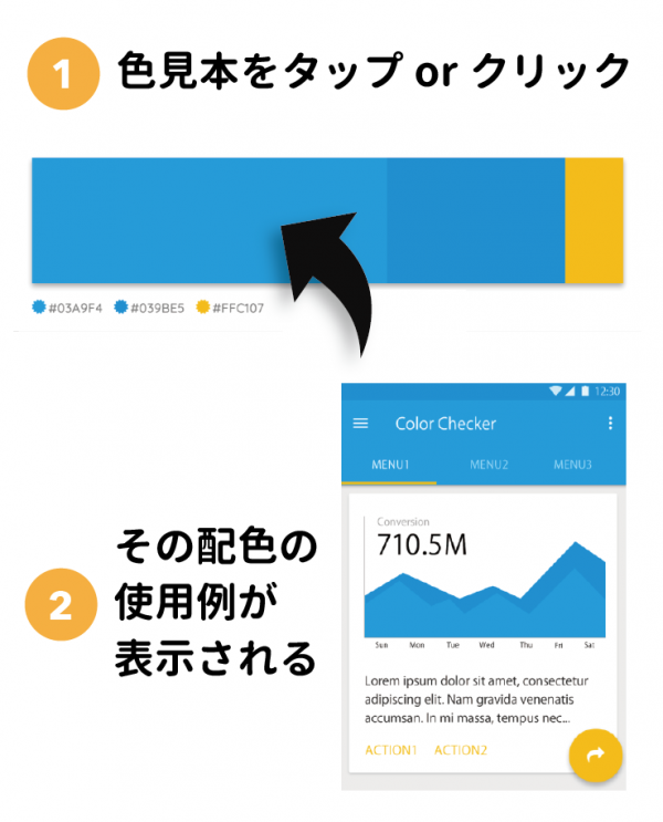マテリアルデザインカラー:使用例までチェックできる配色見本。