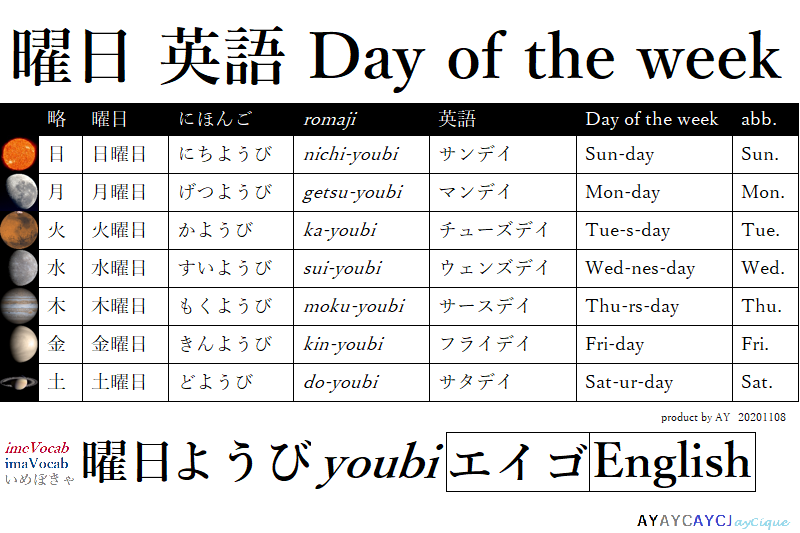 英語 曜日 Day of the week 「3文字」でスペルミスをケアAYCJ。