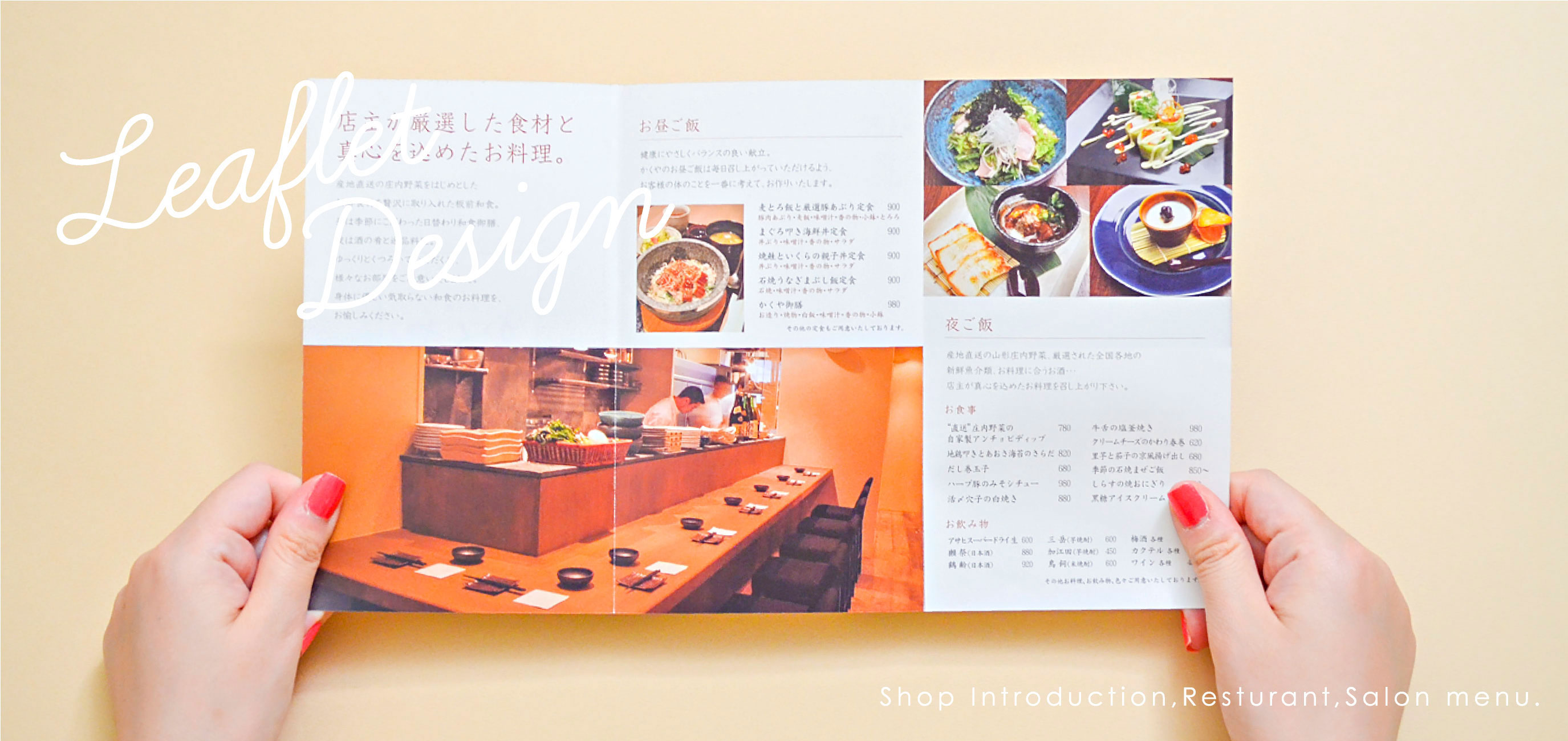 会社やサロン、クリニックなどお店のリーフレットのデザイン・作成ショップツールデザイン。