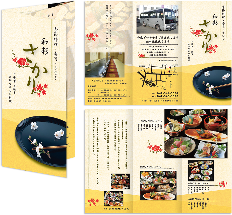 さかり 様 巻き三つ折り リーフレット 6ページデザイン制作実績パンフレット制作ラボ。