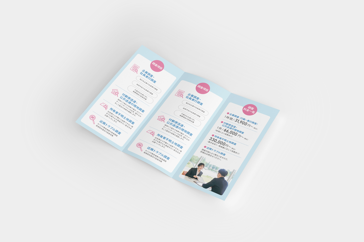 3つ折りリーフレットデザイン制作高槻にあるデザイン屋さんチラシ・名刺・ホームページ制作まちでざ。