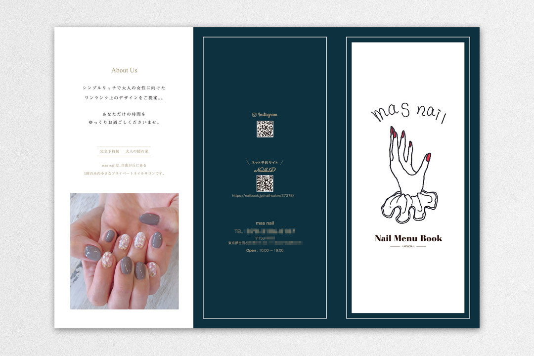 リーフレット 折りパンフレット 制作事例・エステサロン『mana』様GLORIA design Inc. グロリアデザイン。