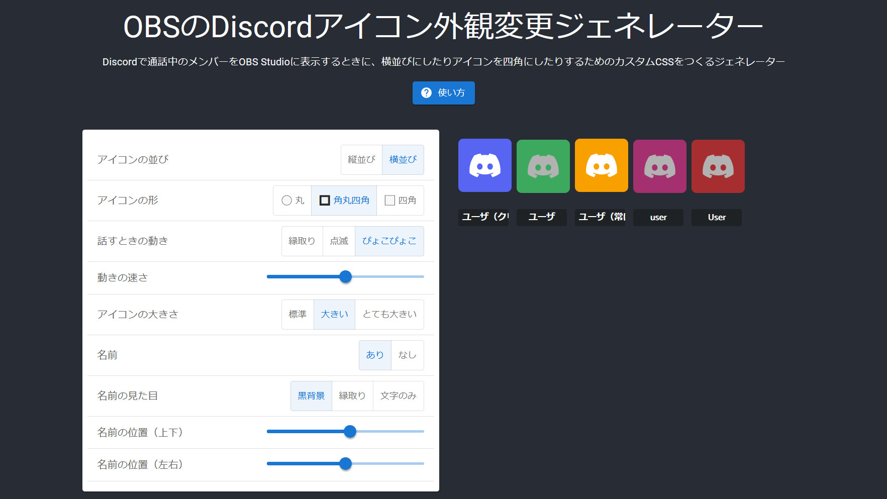 DiscordのアイコンをOBSで四角や横並びにするジェネレーターを作ってみた。
