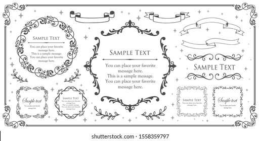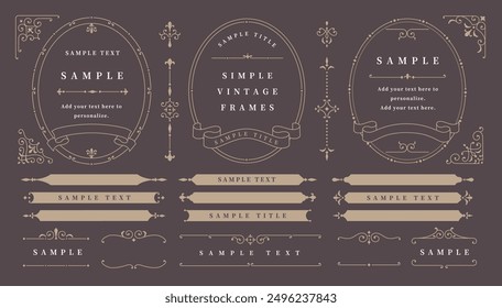 フリー素材ヴィンテージ感のある飾り枠や罫線のお洒落なベクターイラストパーツセット。