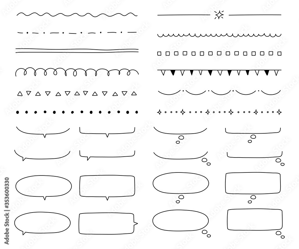 手描き風の飾り線のセット 装飾 仕切り あしらい おしゃれ かわいい 飾り罫 素材 フレーム Stock-vektorAdobe Stock。