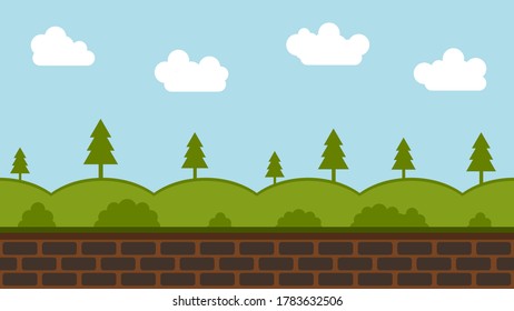 自然ゲームの背景。横スクロール、アクション、およびアドベンチャー ゲームに適しています。のイラスト素材・ベクター Image 67809997。