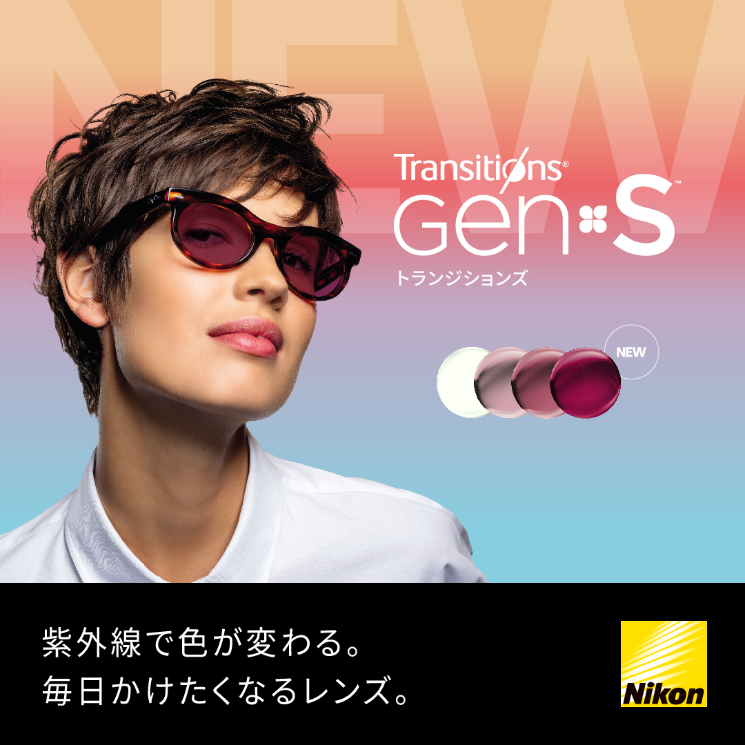 ニコン・エシロールから新世代調光レンズ「トランジションズGEN S」が発売されました <千葉県旭市のメガネ専門店>千葉県旭市のメガネ・補聴器専門店眼鏡の共文堂。