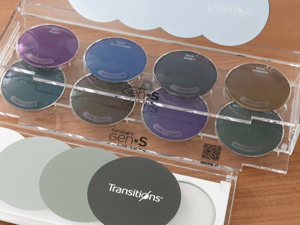 調光レンズ「トランジションズ® GEN S™」サンプルレンズで体験できます長野県 岡谷市大成堂〜メガネ・補聴器の専門店。