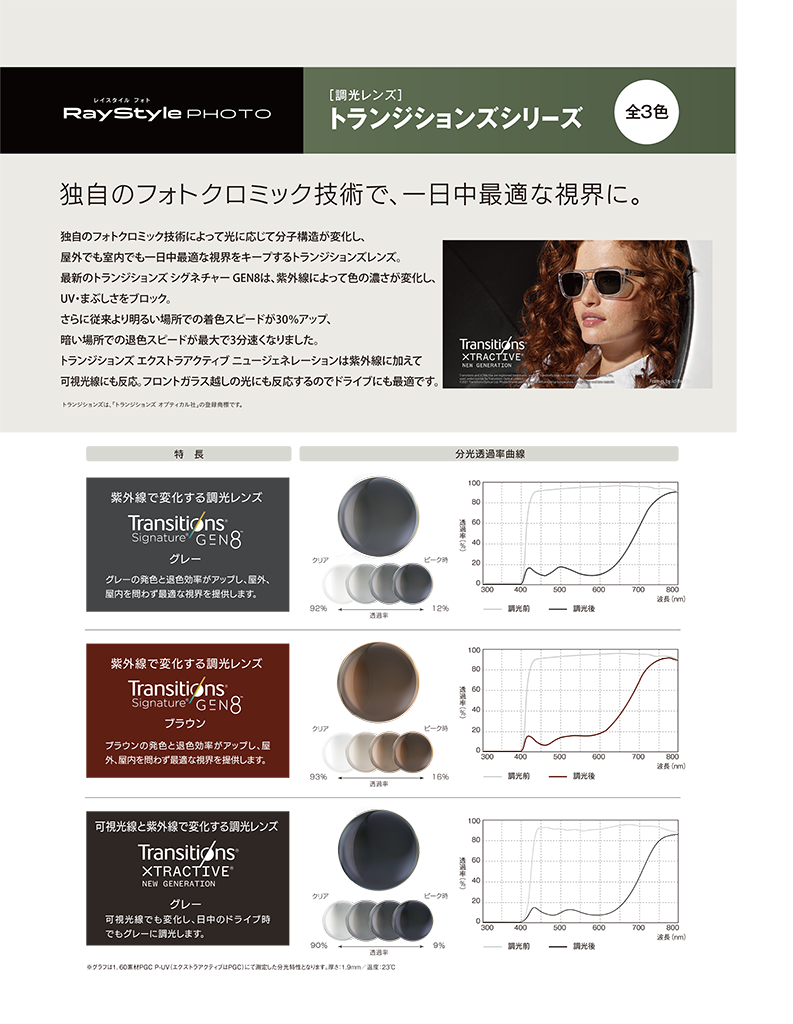 レイスタイル フォト「調光レンズ トランジションズシリーズ ルティーナフォトシリーズ」商品情報 - メガネレンズメーカー 東海光学株式会社。