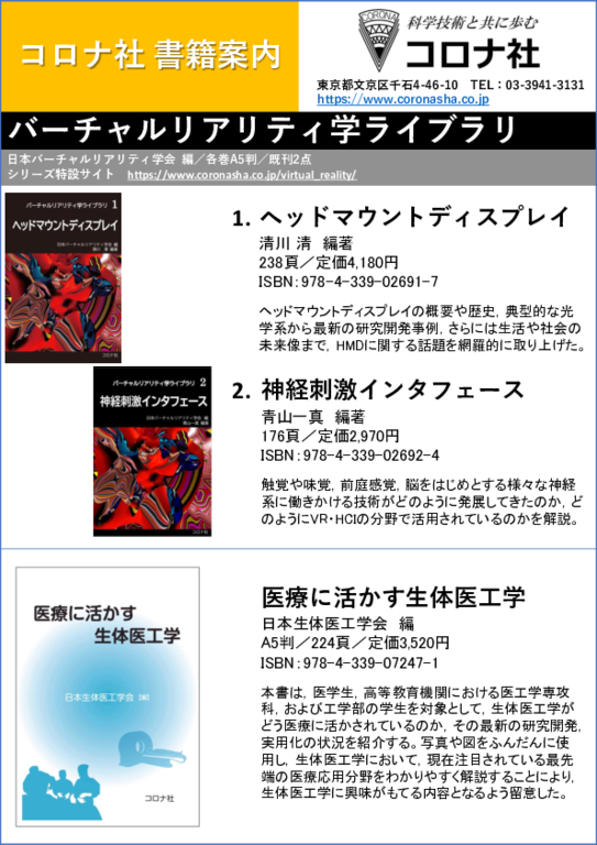 バーチャルリアリティ学ライブラリ 2 神経刺激インタフェースコロナ社。