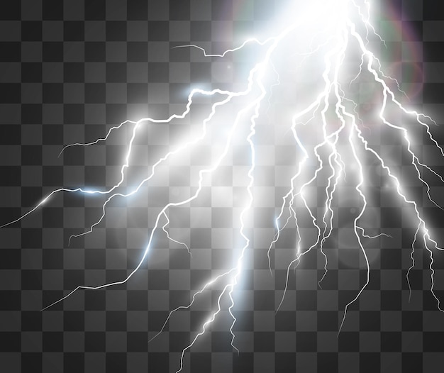 透明な背景にリアルな稲妻のベクトル画像雷のフラッシュPremiumベクトル素材。