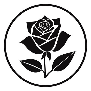 黒の象徴的なデザインに咲く美しい花、象徴的なバラの静けさのロゴのシルエットのイラスト素材・ベクター Image 221282745。