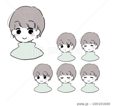 ショートカットの女の子アイコン 表情5種類 グリーンのイラスト素材100101600- PIXTA。
