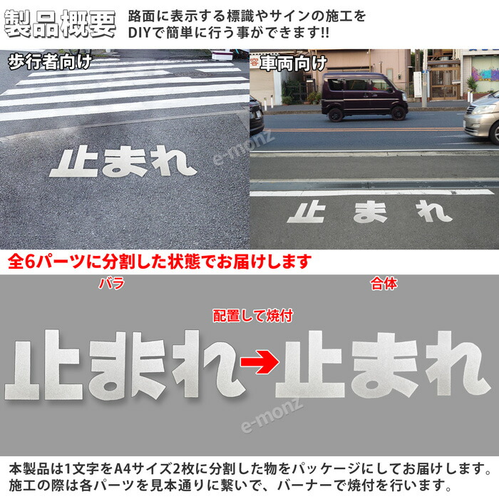 楽天市場 路面標示材 ロードマーキング サイン止まれ 文字標示 白焼付式 反射材 ガラスビーズ 路面標示 路面サイン 道路標示 指示標示規制標示 標示 文字 DIY 施工 注意喚起 安全対策 おすすめ : eモンズ。