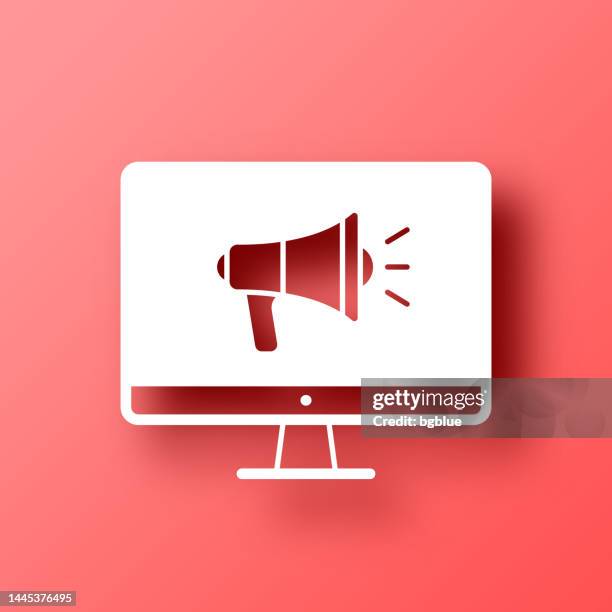 スピーカー アイコン。メガホンの標識です。お知らせ記号です。赤い円の背景の白いスピーカー販売アイコン。ベクトルの図。のイラスト素材・ベクターImage 52803186。
