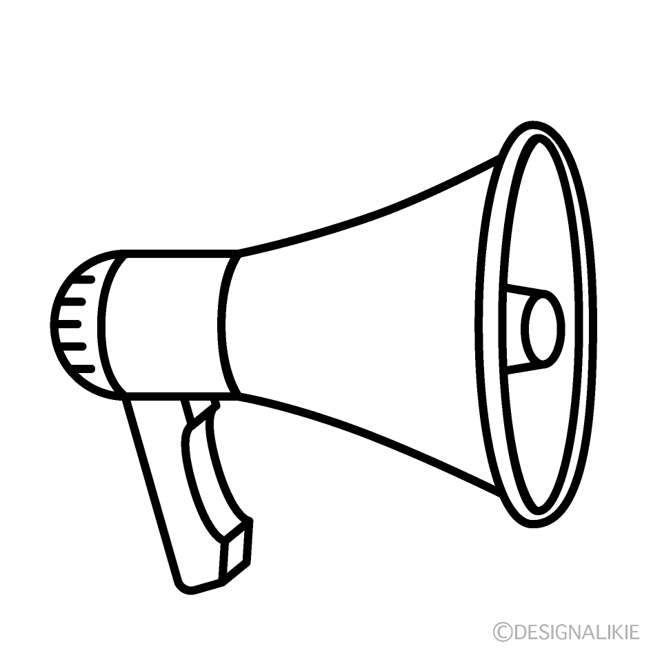 白黒の拡声器イラストのフリー素材イラストイメージ。