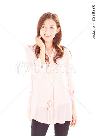 髪に手を当て横に視線を送る30代の綺麗な女性の写真素材8589830- PIXTA。