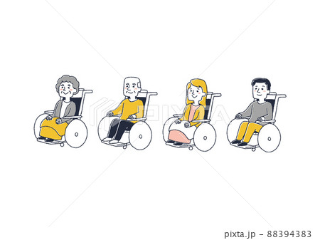 車椅子に乗った人物セット コミカルな手書きの人物 ベクター、線画にカラーのイラスト素材88394383- PIXTA。