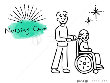 介護スタッフと車椅子の高齢者のチーム 手書き風イラストのイラスト素材128489097- PIXTA。