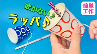楽器工作 紙コップラッパ 糸電話のようなラッパ簡単工作 手作りおもちゃ・割り箸。