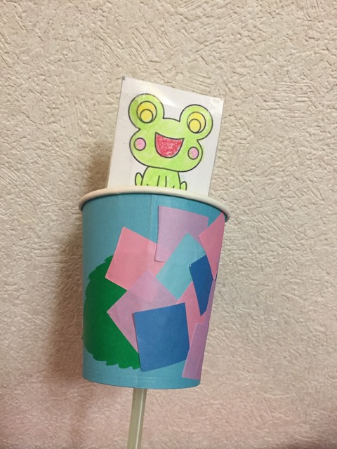 紙コップとストローで作るゲロゲロガエルエコ・楽器・工作・おはなし・自遊帳。