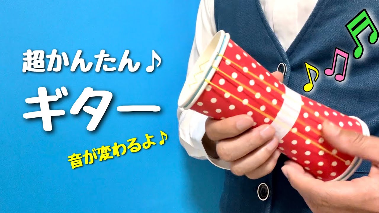 楽器工作 簡単なギターの作り方 輪ゴム、紙コップ手作り楽器・遊べるおもちゃ・遊べる工作 廃材遊び・未就学児・小学校低学年向け。
