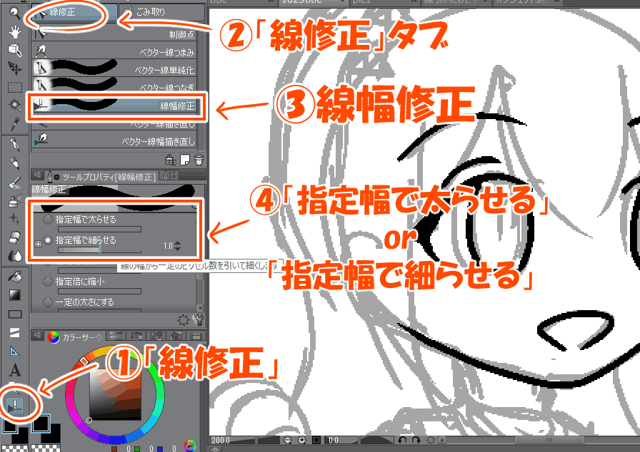 クリスタのベクター線つまみツールの設定と使い方! 線画修正山本電卓のマンガWEB。