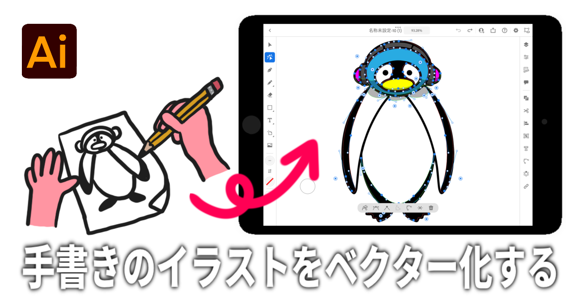 手描きのイラストをベクター化する iPad版Illustratorうーたみイラスト。