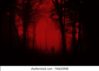 ハロウィーンの背景に怖い森、暗いホラー風景の人写真素材740633908Shutterstock。