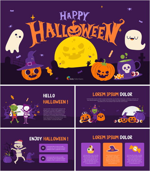 ヨーロッパとアメリカのスタイルを組み合わせたハロウィンイベントのテーマ パワーポイントテンプレートと Googleスライドのテーマを無料でダウンロード - Slidesdocs。