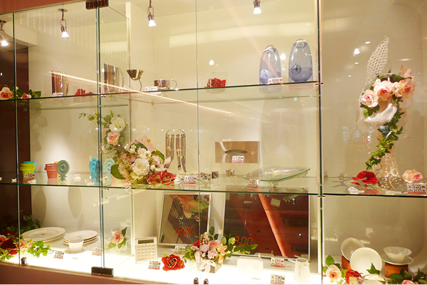 陶器メーカー様店舗ディスプレイ装飾 東京都中央区銀座- 花空間装飾 FLOWERDECOR MAKO-WATANABE。