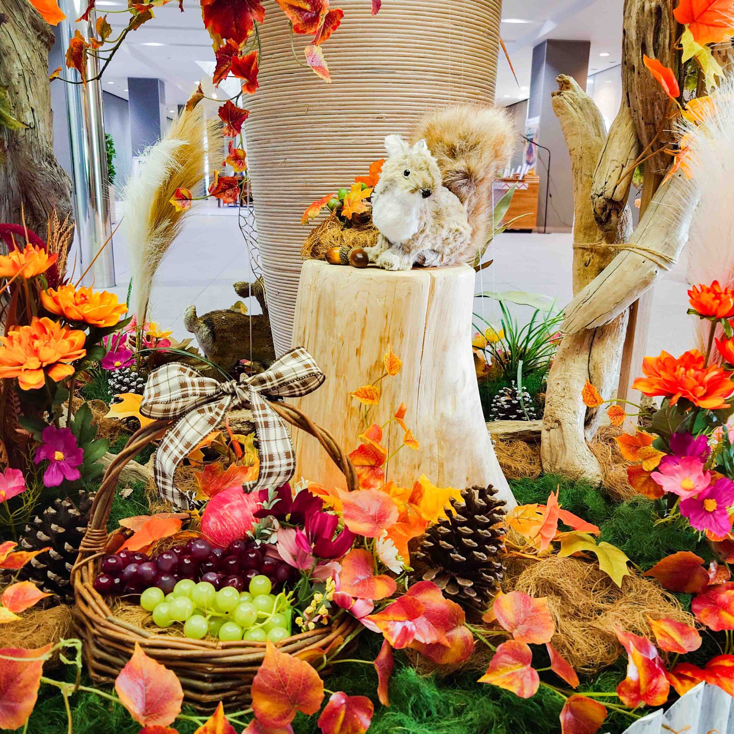 実りの秋と動物たちのディスプレイ - オフィス緑化・季節装飾_ 株 ディアン Deer'n Corp。