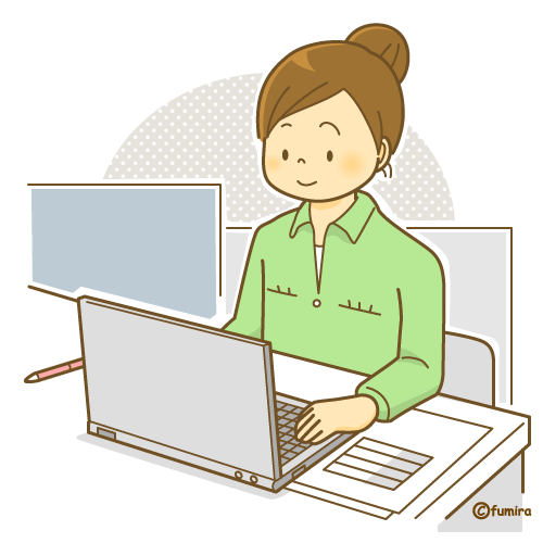 働く女性・デスクワーク・PC作業のイラスト ソフト子供と動物のイラスト屋さん わたなべふみ。