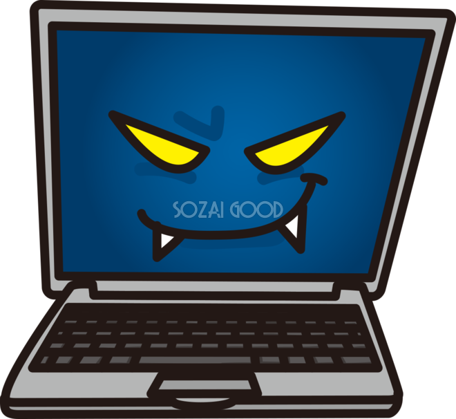 ウイルスの顔のかわいいパソコン無料イラスト64981素材Good。