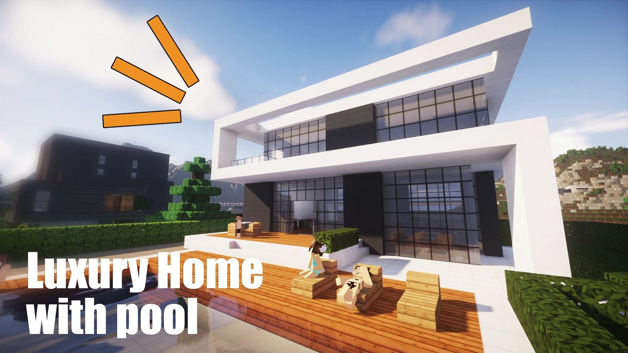 マイクラ プール付き!豪華なモダンハウスの作り方おしゃクラ!公式ブログ。