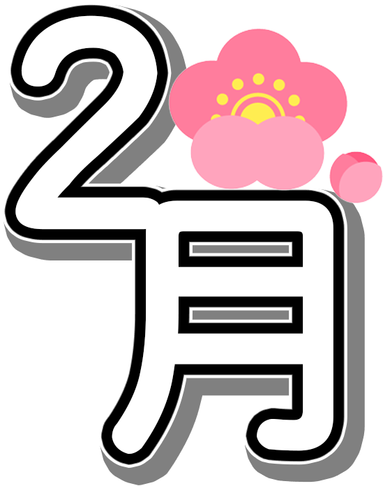 2月のイラストNo.141『文字「2月」・梅の花』 無料のフリー素材集 花鳥風月。