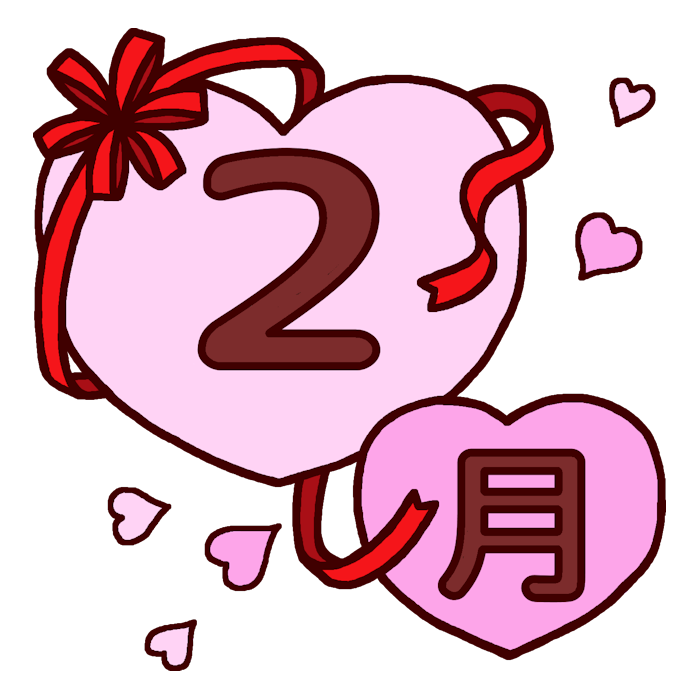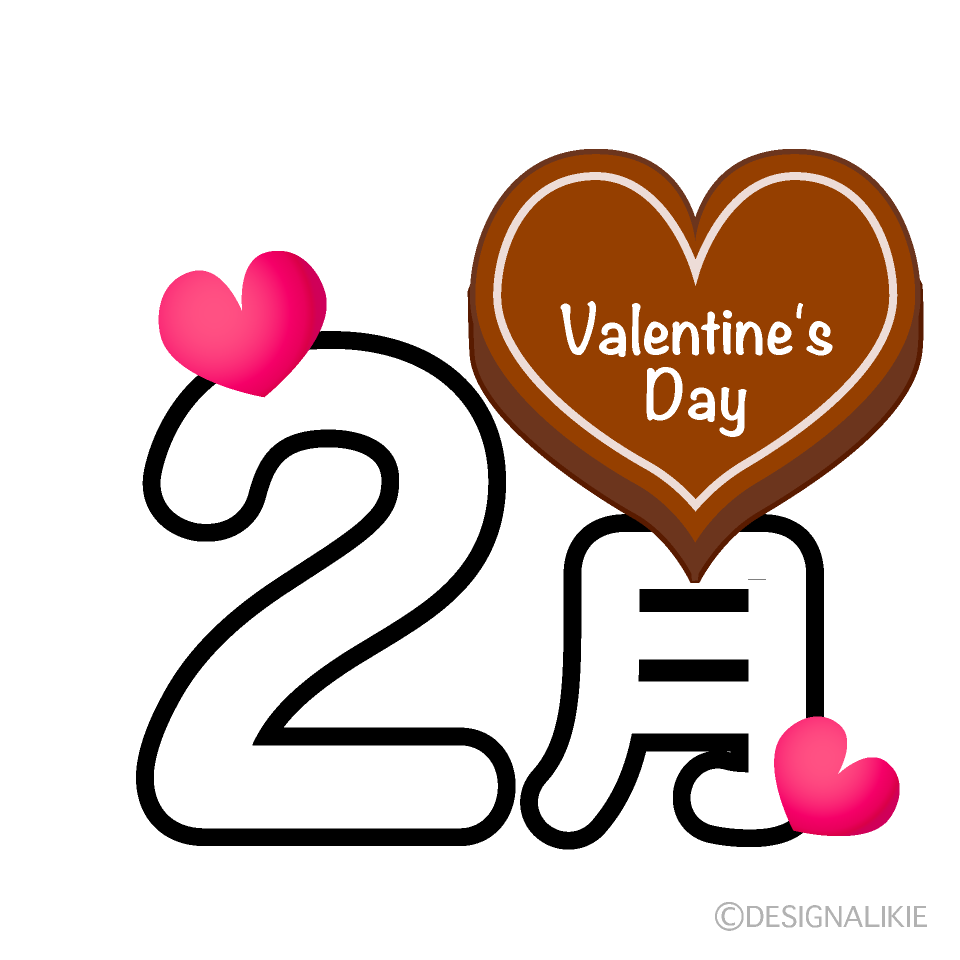 バレンタインのイラストNo.143『文字「2月」・バレンタイン』 無料のフリー素材集 花鳥風月。