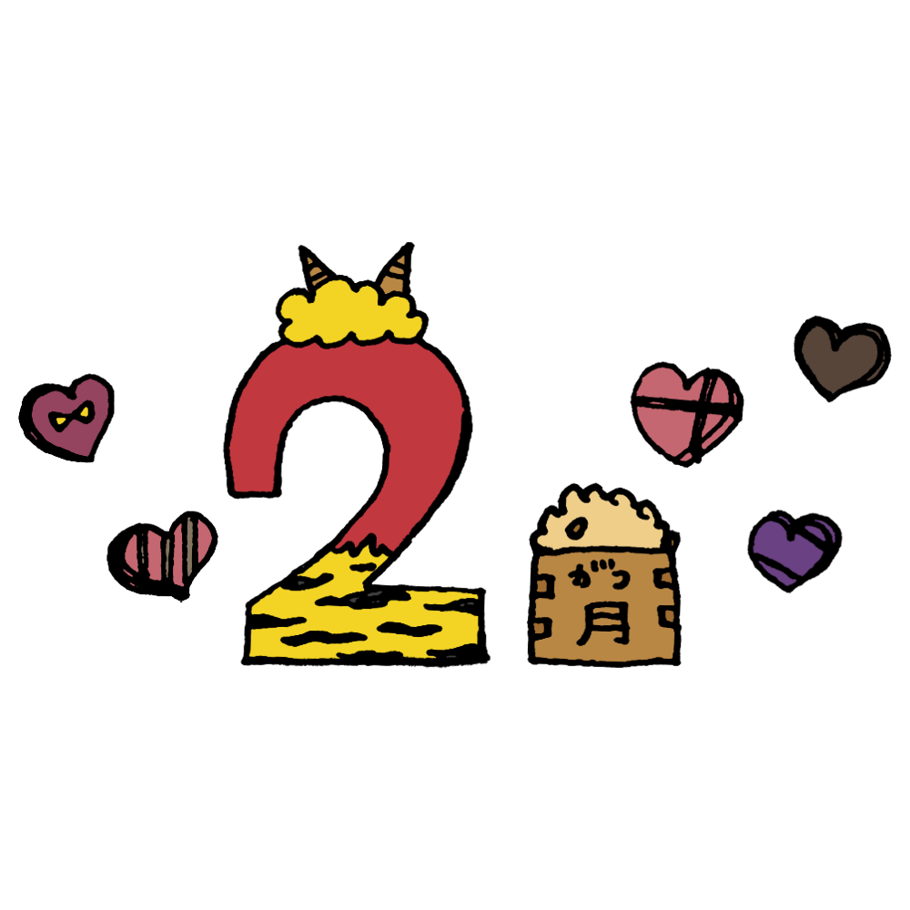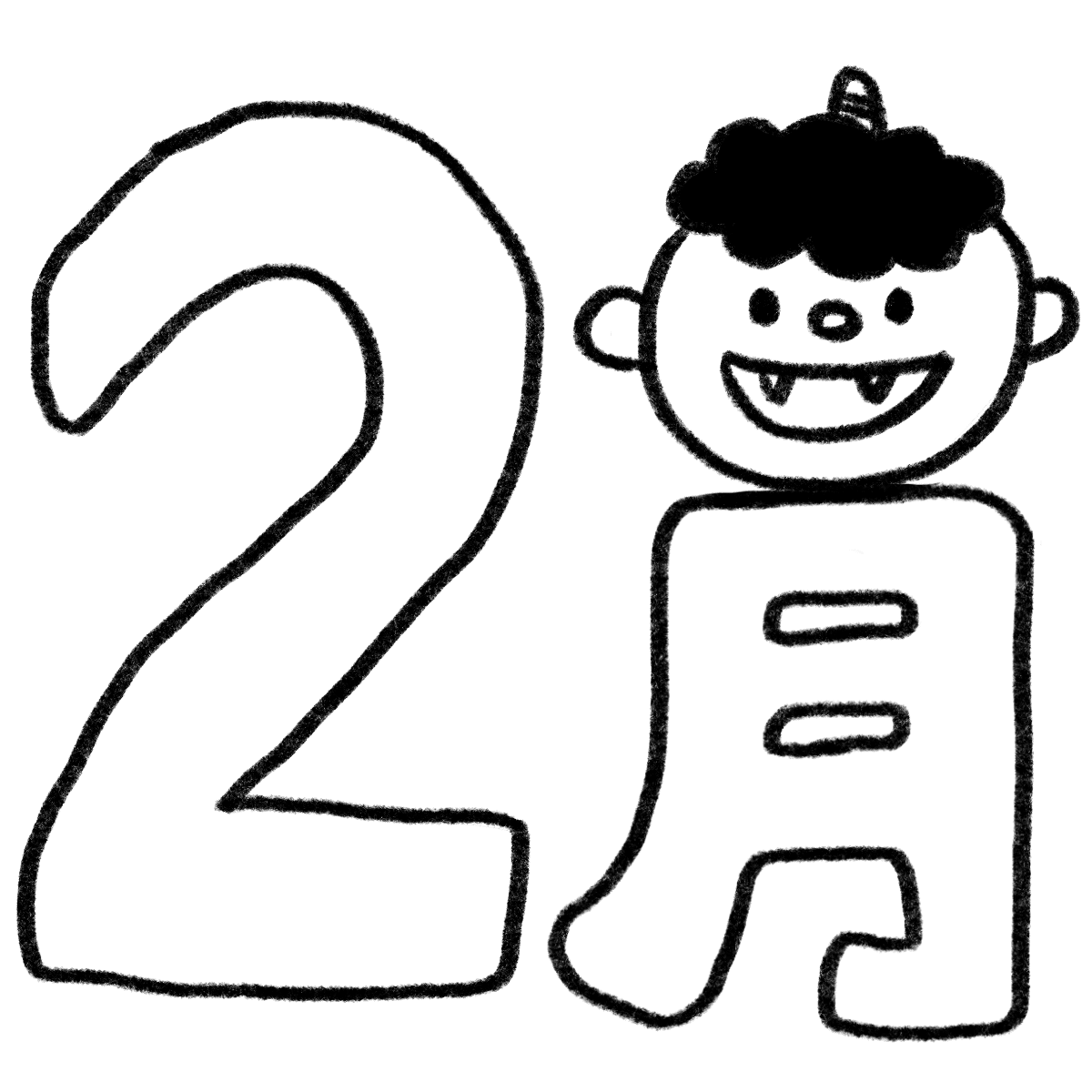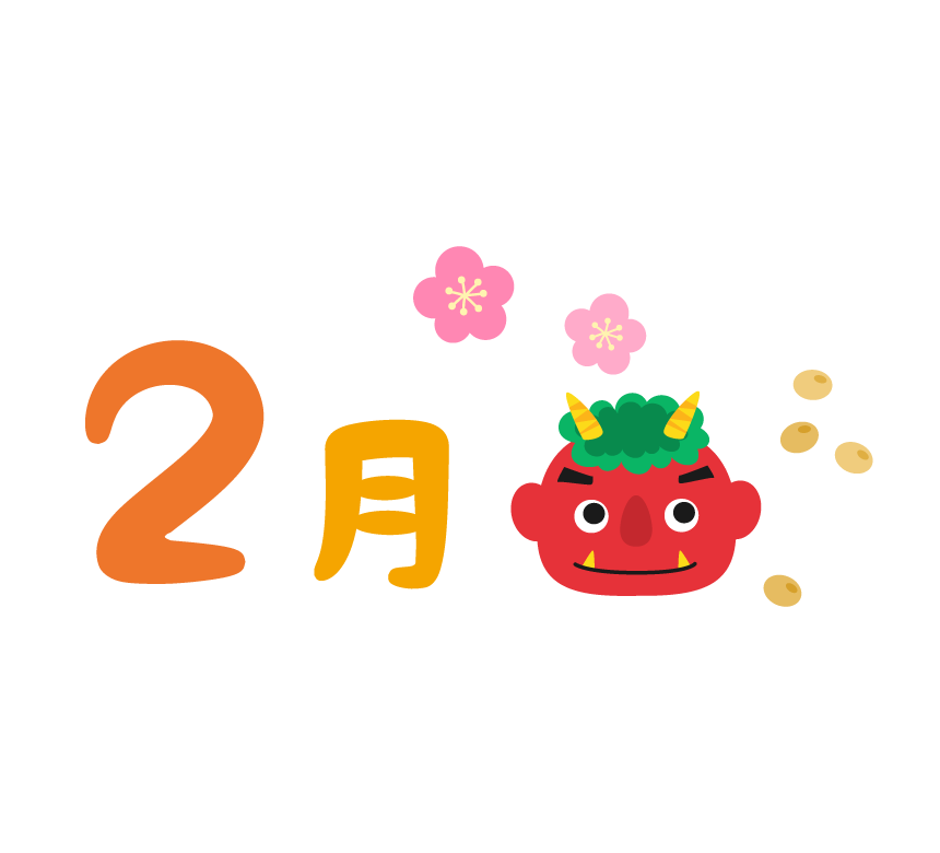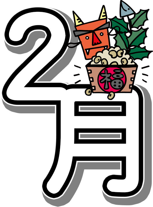 2月のイラストNo.142『文字「2月」・節分』 無料のフリー素材集 花鳥風月。