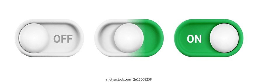 トグルボタンを切り替えます。フラットスタイルで設定されたONとOFFのベクトルアイコン。アプリインターフェーススライダーのイラスト素材・ベクターImage 176479592。