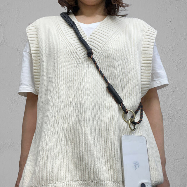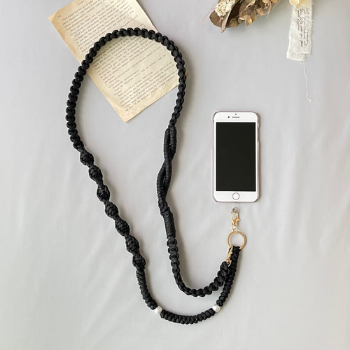 長さ調整可 斜めがけスマホショルダーストラップ・パラコード ブラックiichi日々の暮らしを心地よくするハンドメイドやアンティークのマーケットプレイス。