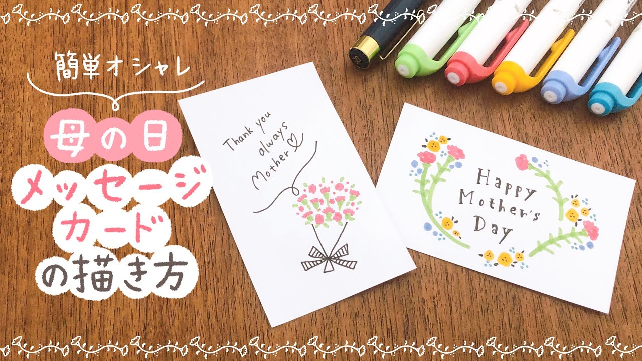 母の日 簡単おしゃれなカーネーションの手作りメッセージカードの描き方マイルドライナー お花 手書きHow to draw mother'sday card ideas。