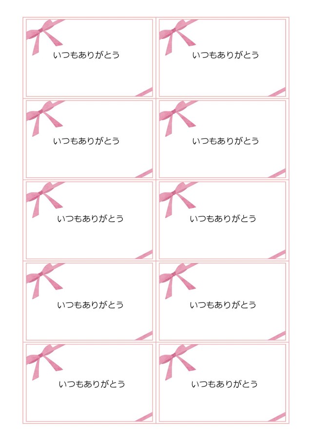 メッセージカードテンプレート01「かわいいリボンのカード」 ワード・Word 無料ダウンロードテンプレートNAVI。