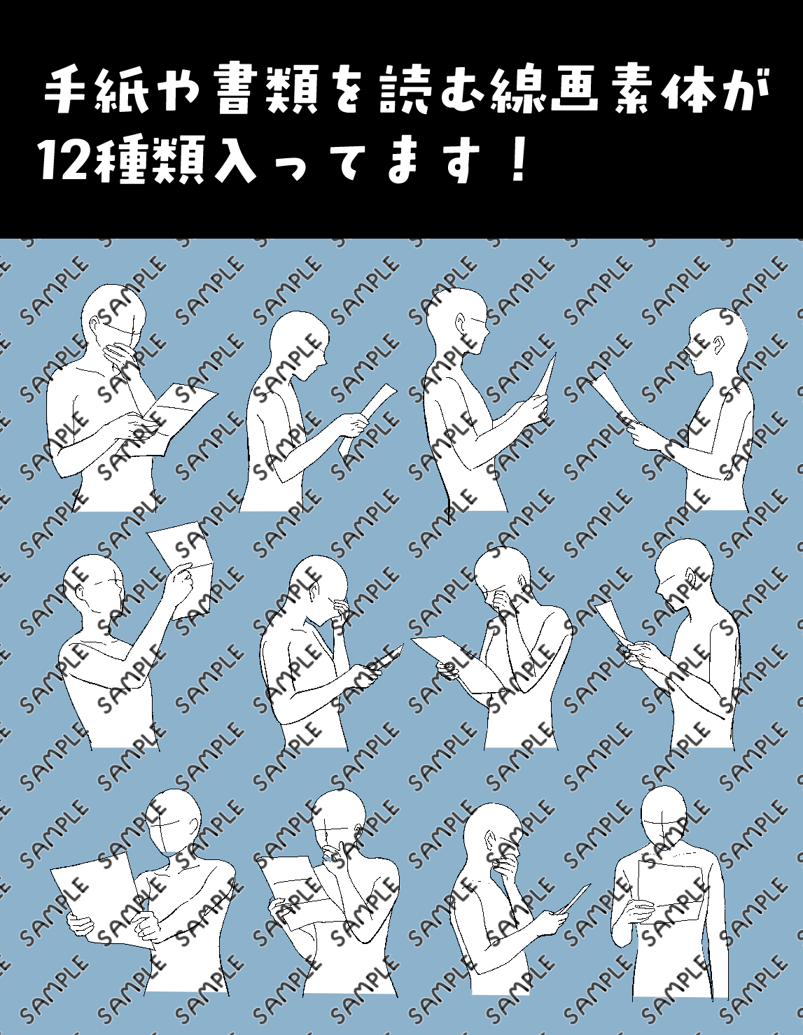 手紙を読むポーズ素材 - CLIP STUDIO ASSETS。
