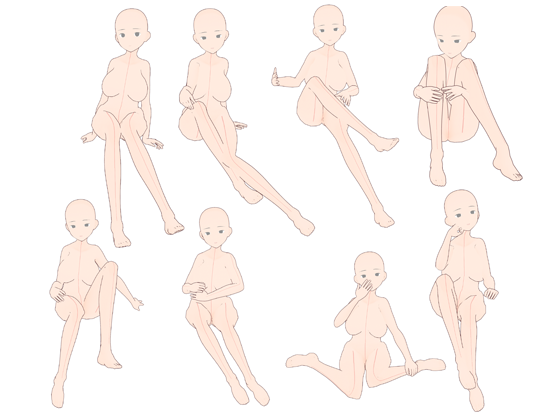 お絵かき資料 女性座っているポーズ集 - illust-pose。