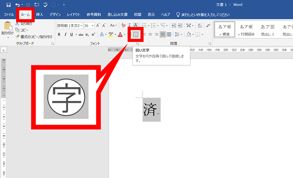 Word 囲い文字を設定する方法リモートサポートサービス 解決支援サイト。